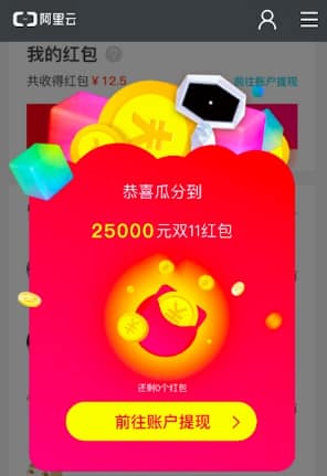 这里注意一下,红包是实时发放的哦,可以在阿里云账户中提现!