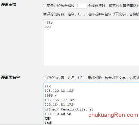 在wordpress仪表盘找到:设置——讨论,然后进行评论的相关设置,包括过滤网址链接和关键字、IP地址。