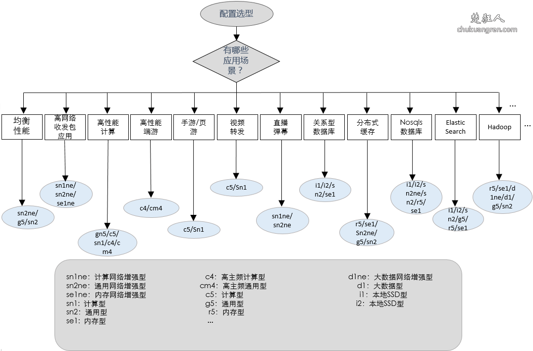目前阿里云可供选择的实例规格有:通用型,计算型,内存型,大数据型,高频型,入门级共享型等,很多企业客户建站前看了都不知道怎么选择,其实阿里云已经根据应用场景给我们推荐了对应的云服务器型号: