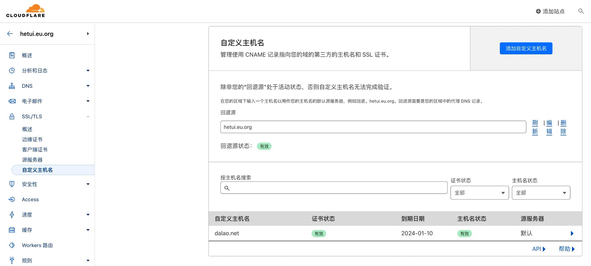 海外线路可以直接无脑接入 CloudFlare,目前 CloudFlare 除了 DNS 接入方式外,可以使用 SAAS 方式接入,这个方法可以自行百度,此处不做过多赘述。