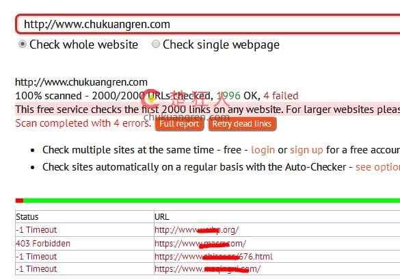 3、brokenlinkcheck.com(查询全站,可免费查询3000个链接)