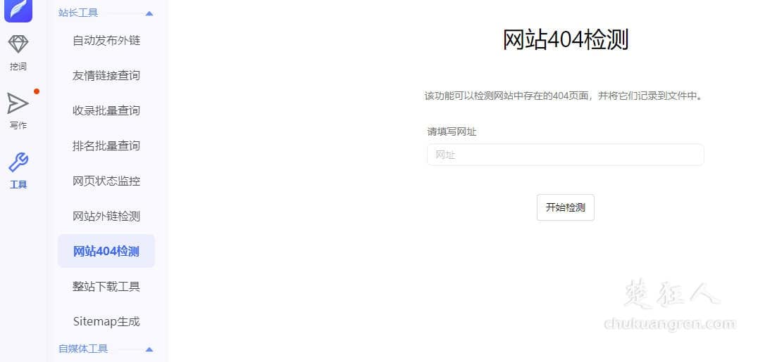这款工具是最近刚推出来的,除了404检测功能,还有包括自动发外链、友情链接查询、收录查询、网站外链检测……等多种seoer常用的seo工具,而且搜外内容管家不仅仅是一款优化工具箱,还包括关键词挖词功能以及免费ai写作功能。