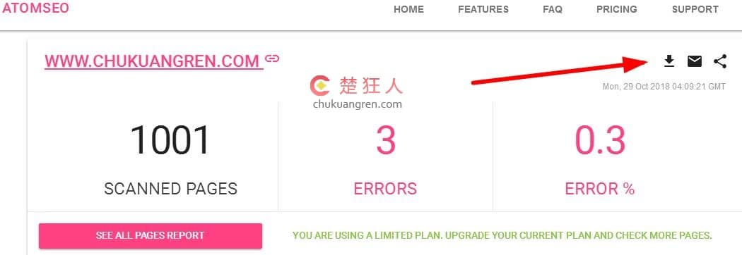 这款在线死链检测工具我个人感觉非常好用,免费版本每次可以1500个链接,可以查看404错误具体出在哪个页面,从而有针对性的进行优化。