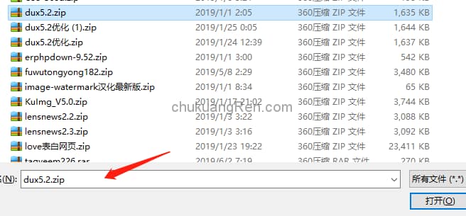 但是需要注意的是,上传的主题压缩包需要是.zip格式的才可以,比如我自己上传一个dux主题测试一下。