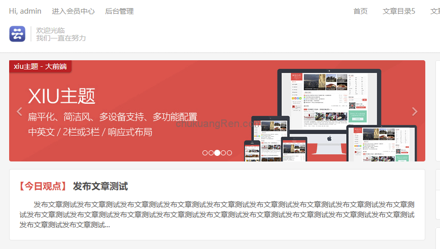 上传之后在外观——主题,选择启用自己上传好的主题,然后转到首页就可以看到效果: