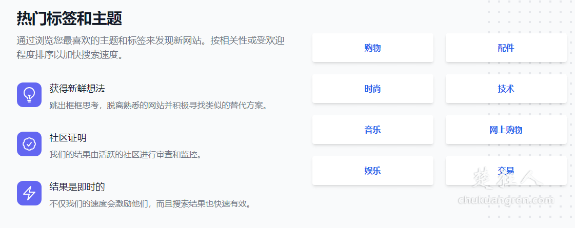 查找类似的网站,探索您喜爱的网站的最佳替代方案。不知道为什么,这个网站的搜索功能似乎暂时不能用了,但是优点也很明显,它按照网站的不同类型进行分类,并且每个分类下都给出了前500个热门网站,这样也可以算另一种意义的查到了相似网站吧。